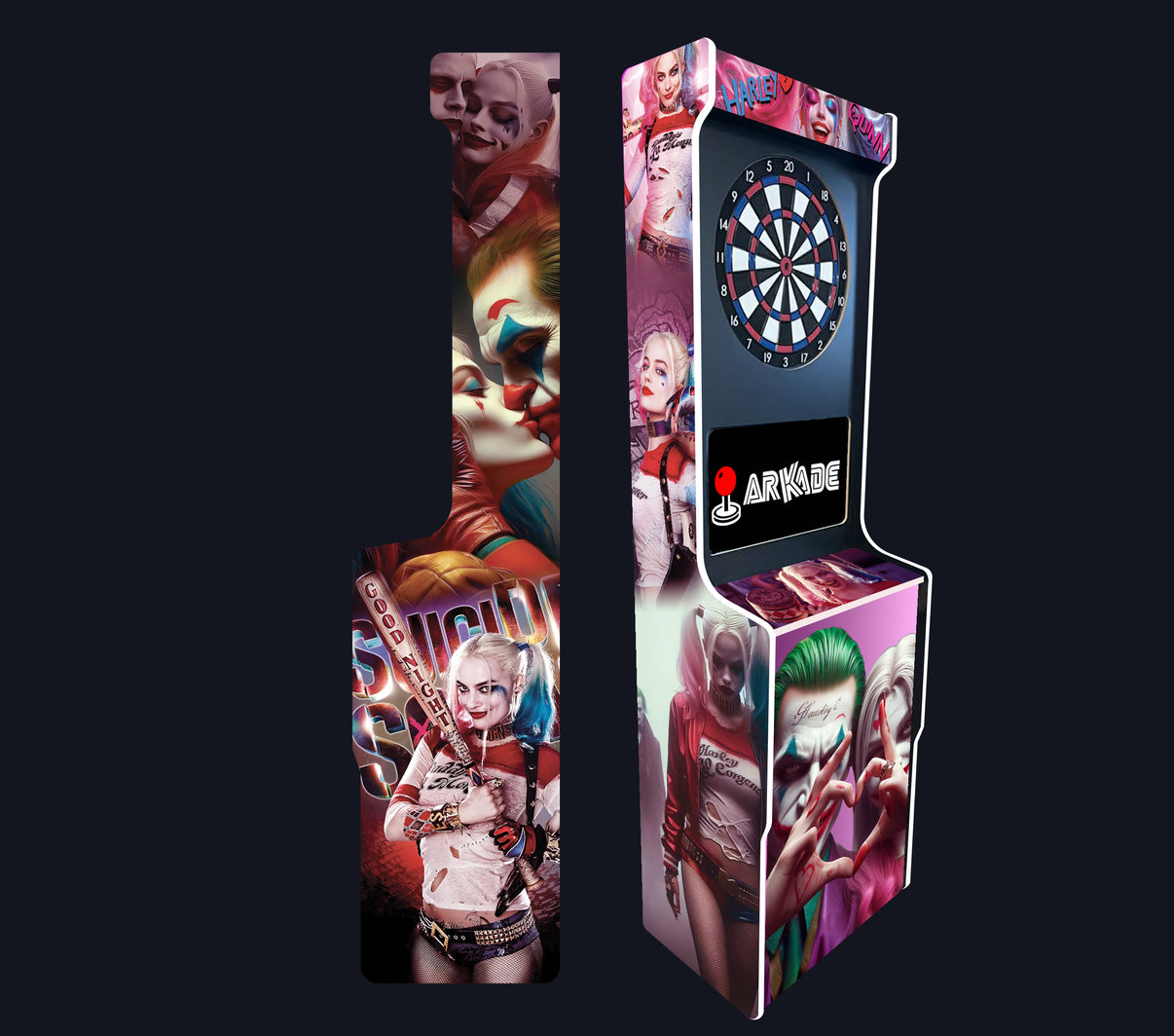 âš Si le duo explosif Joker & Harley Quinn, entre chaos, humour noir et romance dĂ©jantĂ©e, vous fascine depuis toujours, cette borne de flĂ©chettes est la piĂšce maĂźtresse quâil vous faut. Offrez-vous une expĂ©rience unique avec notre borne de flĂ©chettes inspirĂ©e de lâunivers de Joker et Harley Quinn, conçue surâmesure pour sublimer votre intĂ©rieur et donner une touche aussi folle que spectaculaire Ă vos soirĂ©es entre amis.