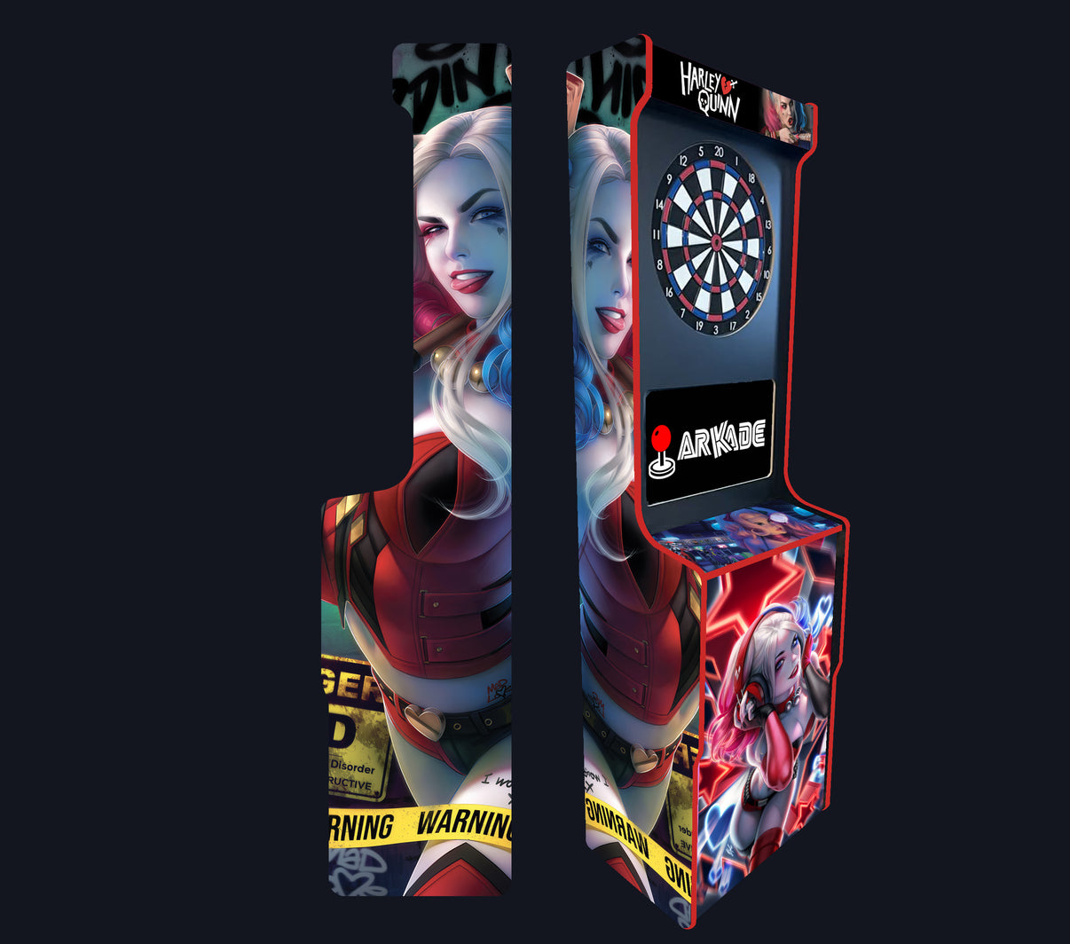 âš Si le duo explosif Joker & Harley Quinn, entre chaos, humour noir et romance dĂ©jantĂ©e, vous fascine depuis toujours, cette borne de flĂ©chettes est la piĂšce maĂźtresse quâil vous faut. Offrez-vous une expĂ©rience unique avec notre borne de flĂ©chettes inspirĂ©e de lâunivers de Joker et Harley Quinn, conçue surâmesure pour sublimer votre intĂ©rieur et donner une touche aussi folle que spectaculaire Ă vos soirĂ©es entre amis.